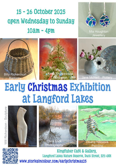 Kingfisher Gallery, Langford Lakes, Duck Street, Steeple Langford, Wiltshire SP3 4NH. 10:00am - 4:00pm (closed Monday 20th, Tuesday 21st and Thursday 23rd October).
