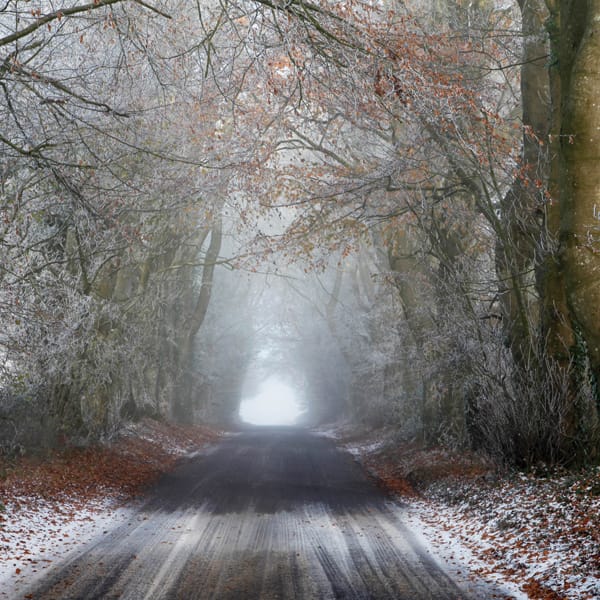 A December morning of mist and hoar frost at Woodminton Down, on the road between Bowerchalke and Sixpenny Handley in Wiltshire.