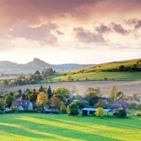 Late afternoon sunshine in the Deverills: an autumn view of Monkton Deverill taken from the footpath to Summerslade Down.