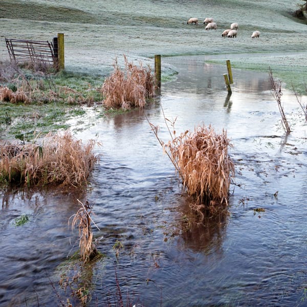 The River Ebble in winter at Fifield Bavant in the Chalke Valley, Wiltshire.